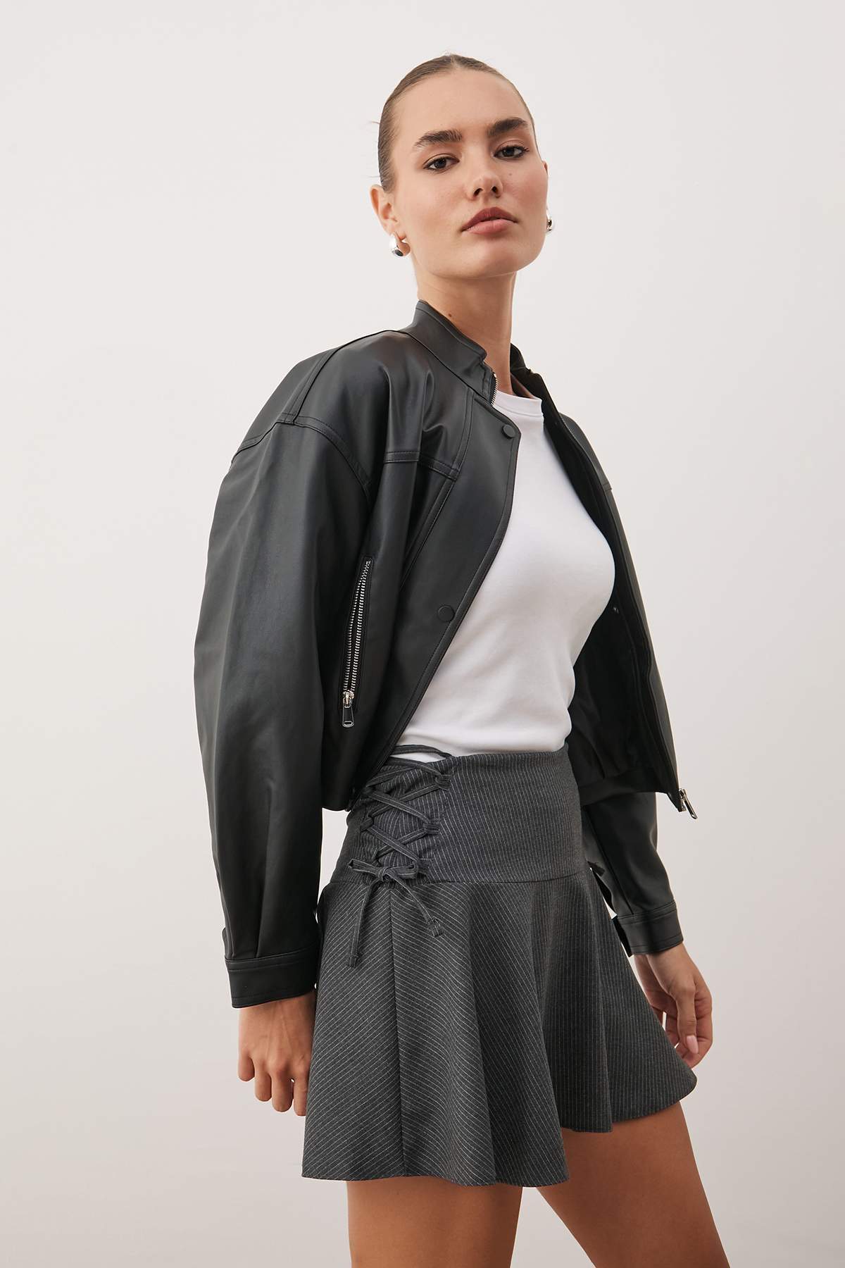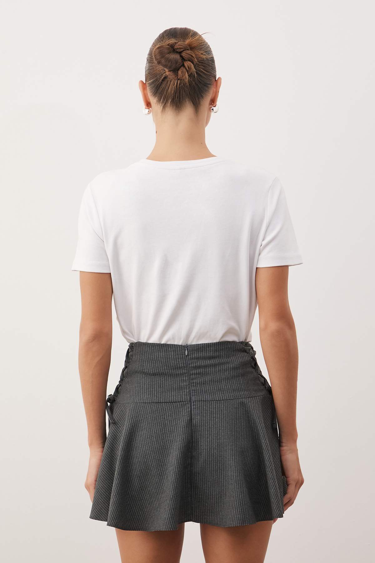 تنورة قصيرة منسوجة بتفاصيل دانتيل من أنثراسايت TWOAW26SR00054